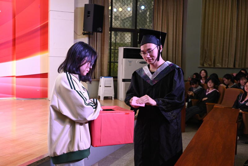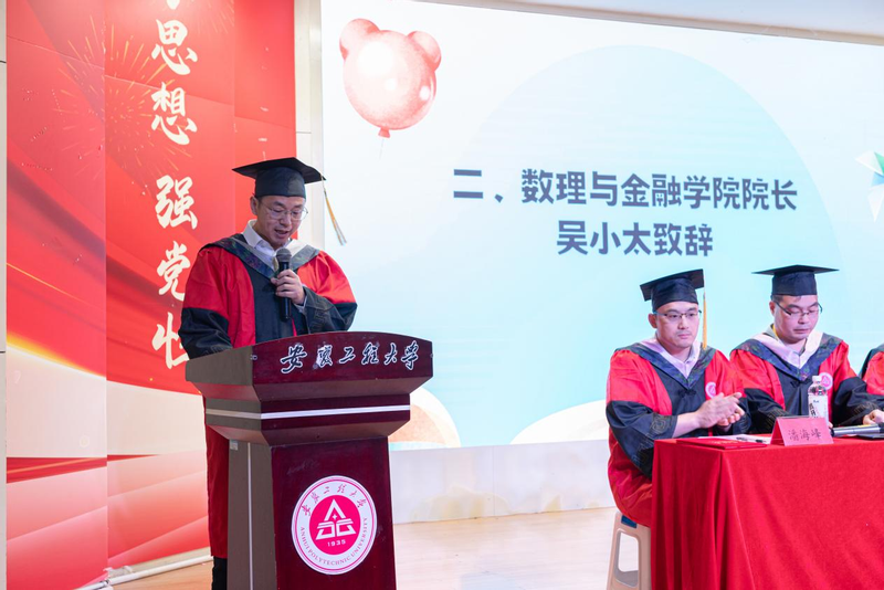 吴小太代表学院发表了热情洋溢的致辞,对毕业生们表示了最热烈的祝贺,回顾了他们在校期间的成长与进步。他希望毕业生胸怀国之大者,继续保持学习的热情,不断提升自己,为实现个人价值和社会责任而努力奋斗。“青年们,勇往直前,一路追寻自己的梦想吧!母校永远是你们的精神家园和坚强后盾。”