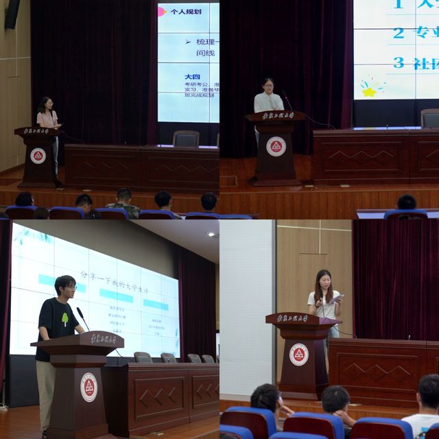 金融研24赵昕阳从学科竞赛入手,鼓励新生利用好时间学好每门课程,学习一些有用的编程语言,积极参加数学建模竞赛。统计211班李季娟分享了如何成长为一名党员、专业课学习、社团活动、学科竞赛等宝贵经验。金融211班阮友慧作为校“十佳大学生”代表,与同学们分享了自己的团学工作经验和志愿服务经历。统计211班苏文王围绕“选你所爱,爱你所选”主题展开,介绍了自己参加暑期“三下乡”社会实践的丰富经历。