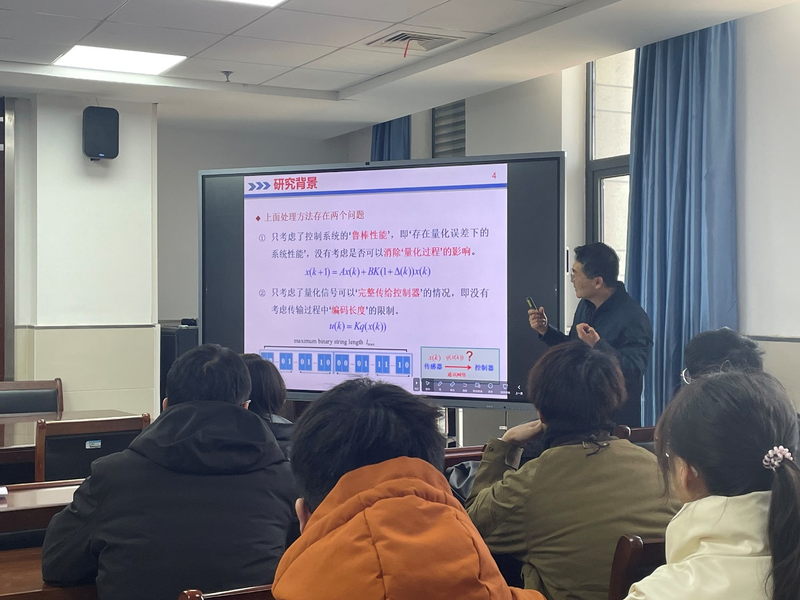 牛玉刚以《有限/无限编码长度下的自适应量化控制策略》为题,阐述了在无限编码长度下,如何设计动态量化控制策略使被控系统达到“与非量化情况下相同的控制性能”,强调了动态量化控制策略的出发点、关键点;介绍了有限编码长度情况下,量化信号编码长度对系统控制性能的影响,指出在有限编码长度下系统控制性能好坏依赖于编码长度。